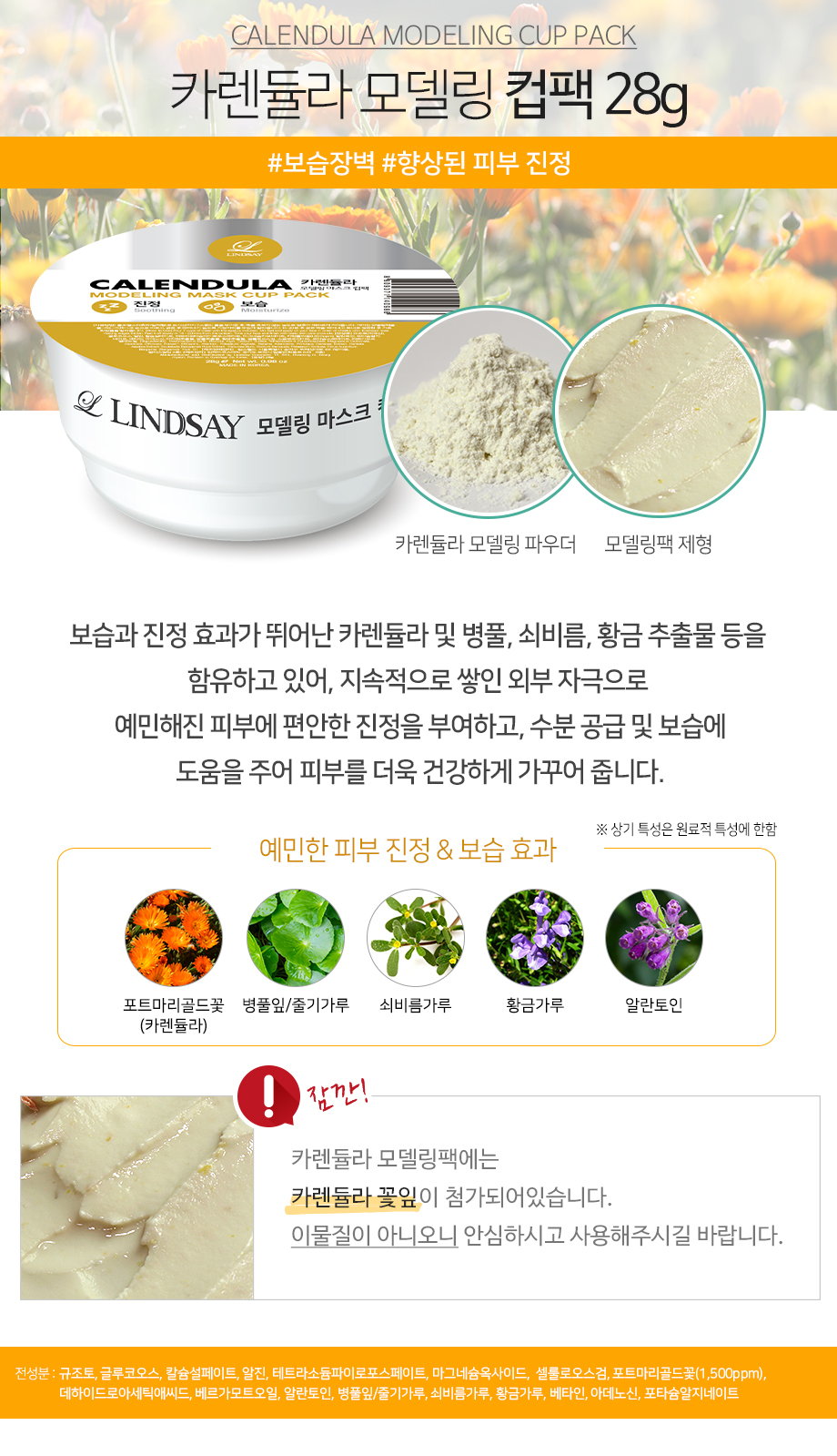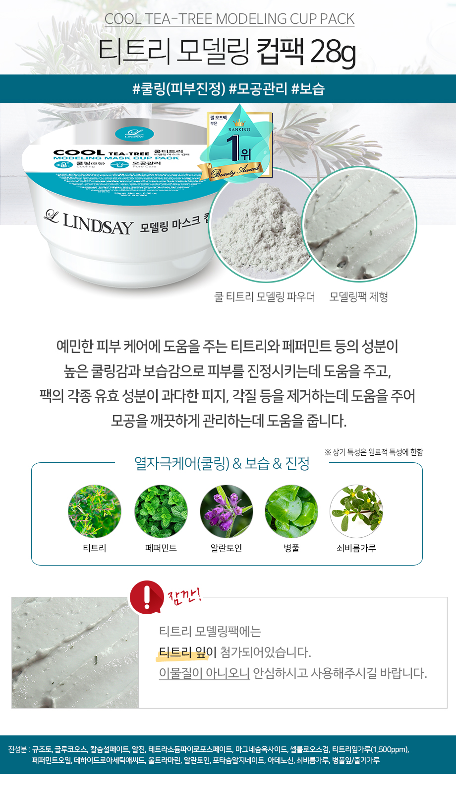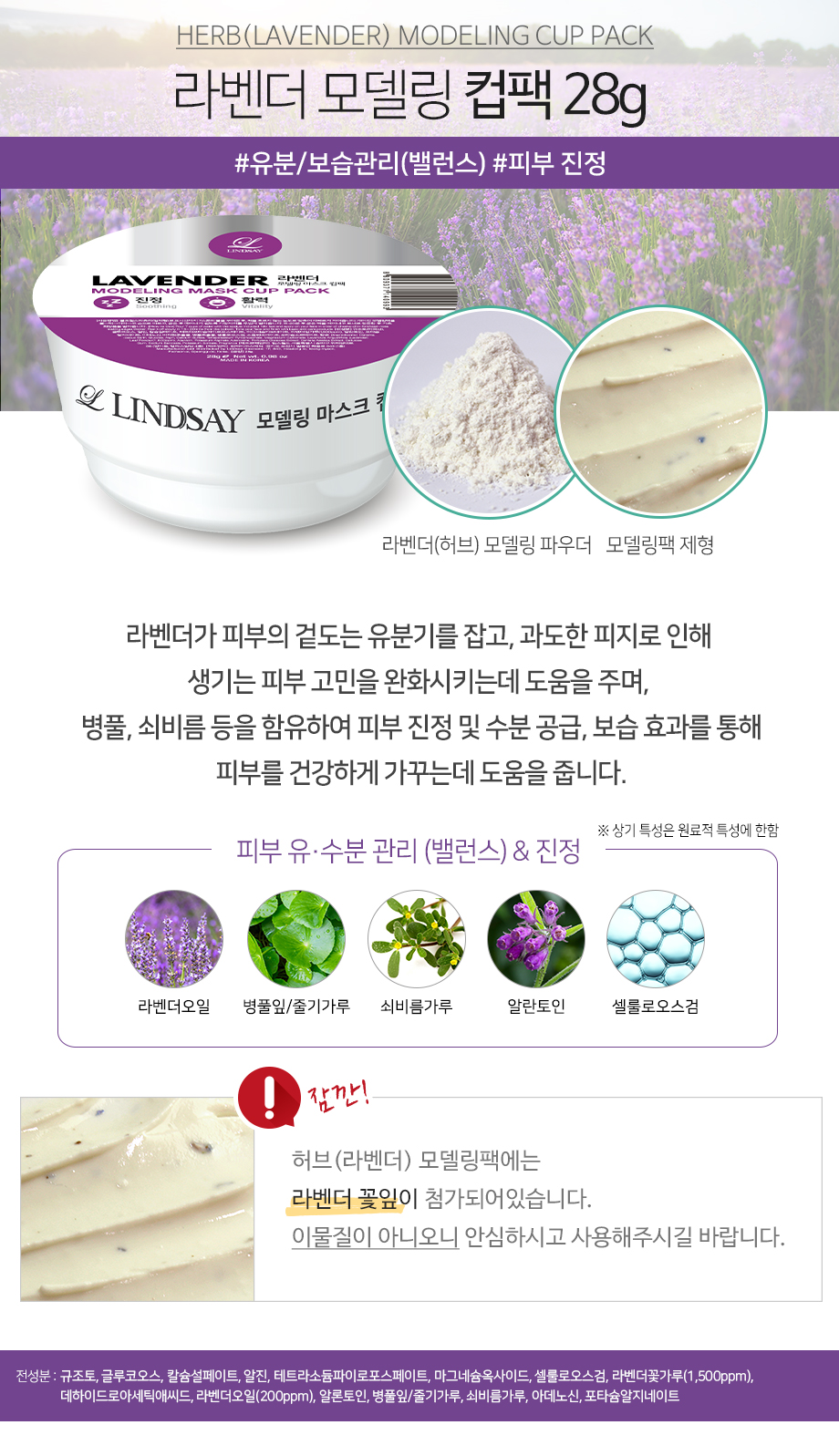 Collagen(綠)--改善皮膚彈性並滋潤皮膚 Cool Vitamin(橙)--亮麗肌膚與營養 Calendula(黃)--舒緩並滋潤敏感肌膚 Lavender(紫)--皮膚油脂和水分管理(平衡)和舒緩 Charcorl(黑)--皮脂吸收/去除/毛孔管理 Cool Tea-Tree(藍)--熱刺激護理(冷卻)&保濕&舒緩 Calming Herb(深綠)--舒緩肌膚,平衡油水