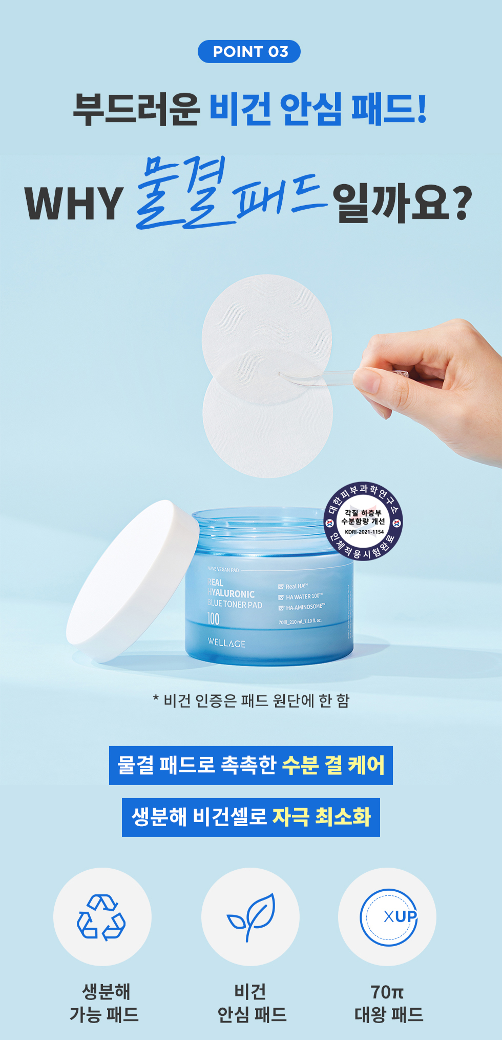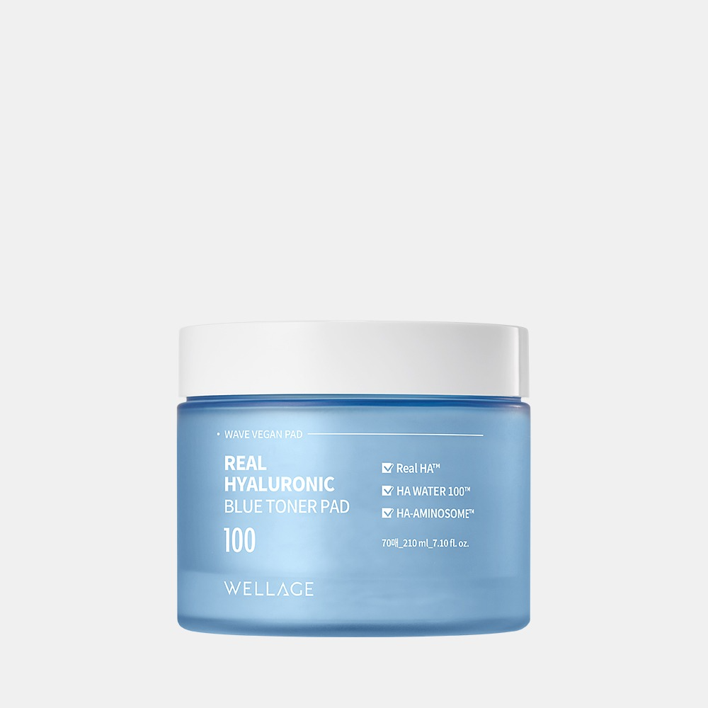 Wellage透明質酸藍色爽膚水墊 70片+保濕急救精華膠囊1粒(代購)