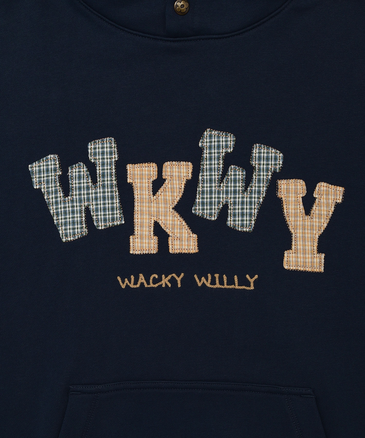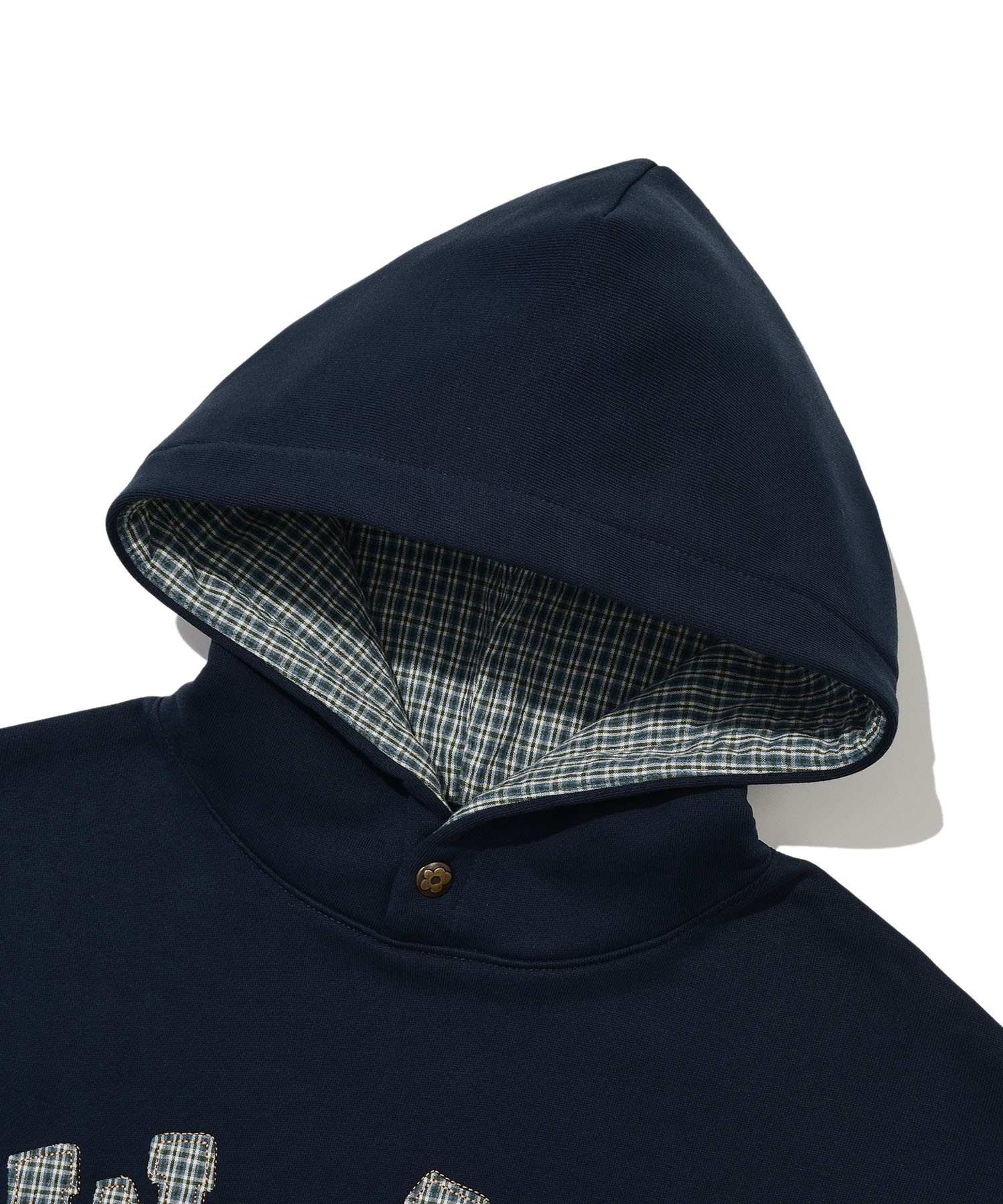 Size : Free ~帶有格紋貼花徽標的寬鬆連帽衫